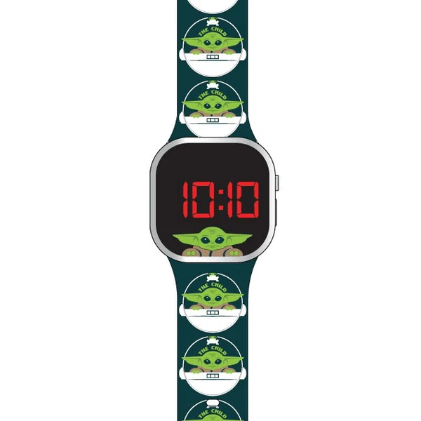 - LED kinderhorloge in stijlvol The Mandalorian Design met lichtgevend Digital display en zachte acryl band. Het LED Digital display toont uren, minuten, seconden, maand en dag.