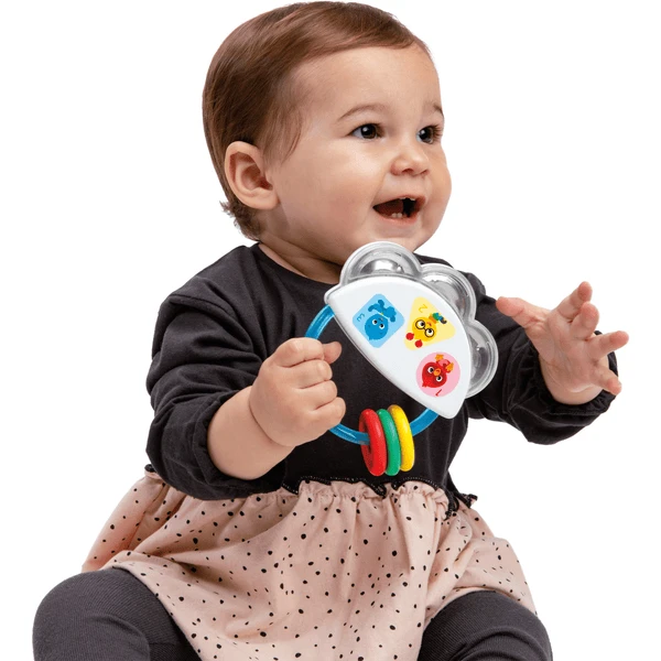 - Met de Tiny Tambourine muzikaal speelgoed en rammelaar van Baby Einstein , schudt, glijdt en lacht baby zijn weg in de wereld van de muziek.