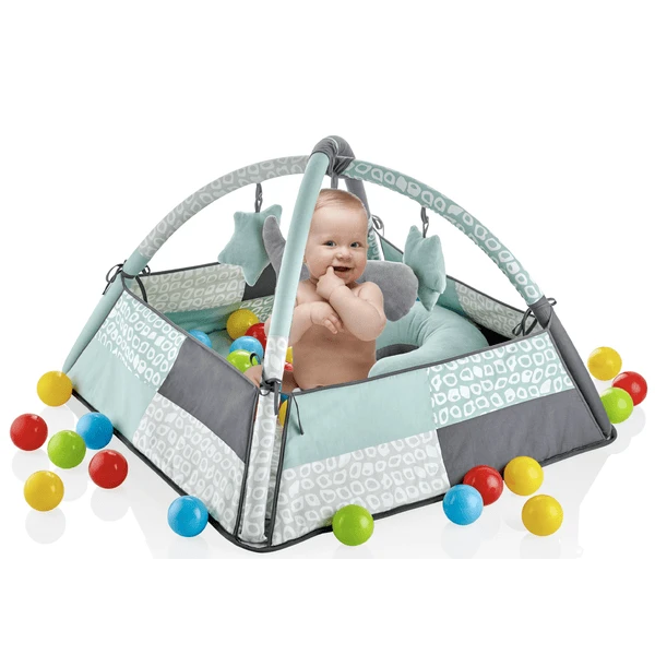 - Het zachte speelkleed met speelboog biedt baby’s vanaf het begin speelplezier, met slechts enkele handbewegingen kan het in een ballenbadje veranderd worden.
