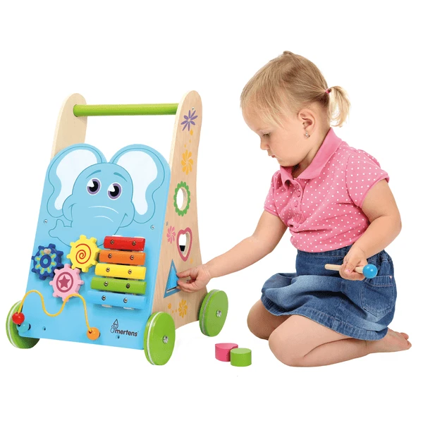 - Met xylofoon, houten blokken, kettingwielen en een interessant labyrint met kralen