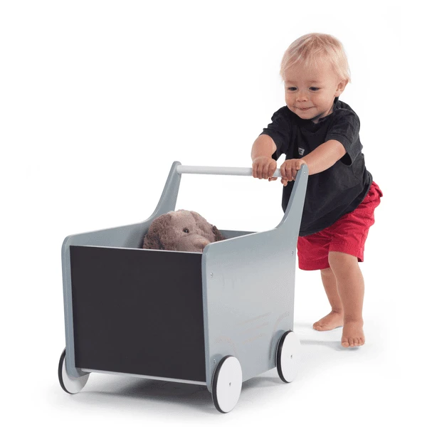 Dit leuke houten wagentje is ideaal om de favoriete speeltjes van uw kind te verzamelen en het staat nog mooi als decoratie in de woon- of speelkamer! Ook de motoriek kan geoefend worden op het krijtbord dat vooraan het karretje met de mooiste tekeningen versierd kan worden.