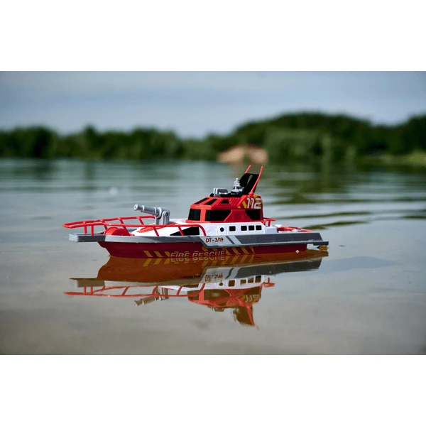 De Dickie Toys RC vuurboot is volledig functioneel en heeft zelfs een echt bestuurbaar waterkanon. De radiografisch bestuurde boot heeft een turbofunctie en is gemakkelijk te manoeuvreren op alle wateren.