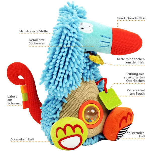 Kleurrijke linten en verschillende oppervlakken moedigen u aan om te grijpen, aan te raken en te voelen. Er is veel te ontdekken en Bob bevordert op speelse wijze de coördinatie, de motoriek en het logisch begrip. Sterke kleuren en contrasten zorgen voor aandacht en perceptie, zelfs voor de kleinste kinderen.