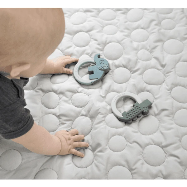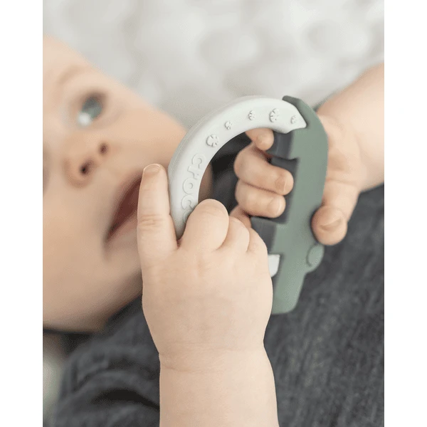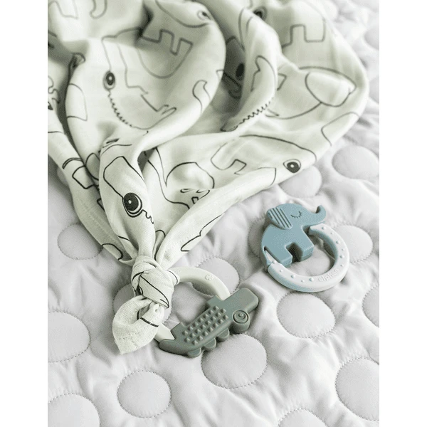 Set van twee zachte siliconen bijtringen in de vorm van Deer Friends Croco en Elphee. De bijtringen zijn gemakkelijk vast te pakken door kleine handjes en de verschillende vormen en texturen stimuleren en verzachten het doorkomen van de tandjes. Ze zijn gemaakt van zachte, voedselveilige siliconen en kunnen worden gewassen in de vaatwasser of gesteriliseerd met heet water. Leg ze even in de koelkast, want de koeling heeft een verzachtende werking op geïrriteerd tandvlees. De set is ook ontworpen voor de kleinste babyhandjes en stimuleert de visuele, orale en tactiele zintuigen.