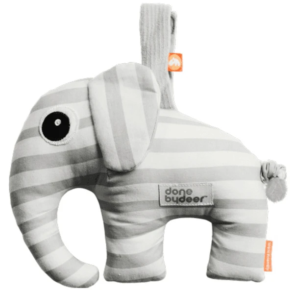 Laat je kleintje zingen over de gelukkige olifant Elphee of stem gewoon af op het geluid van de regenboog. De zachte muziekdoos kan overal worden bevestigd dankzij de praktische klittenbandsluiting.
