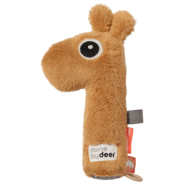 De Raffi-giraffe houdt ervan om te spelen en de jongsten te vermaken. Raffi geeft veel plezier met zijn zintuiglijke kenmerken zoals zijn zachte texturen en geluiden. Zijn lange nek is perfect voor kleine vingers, die worden gestimuleerd om te verkennen door de rammelaar en pieper. Deze rammelaar komt bij u thuis in de trendy kleur mosterd.