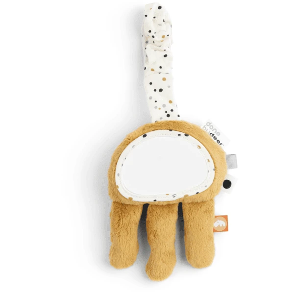 Beide speeltjes kunnen gemakkelijk aan de kinderwagen, autostoel, wieg of box worden bevestigd met de praktische klittenbandsluiting. De superzachte gelei heeft een grappig spiegeltje en krakende pootjes.