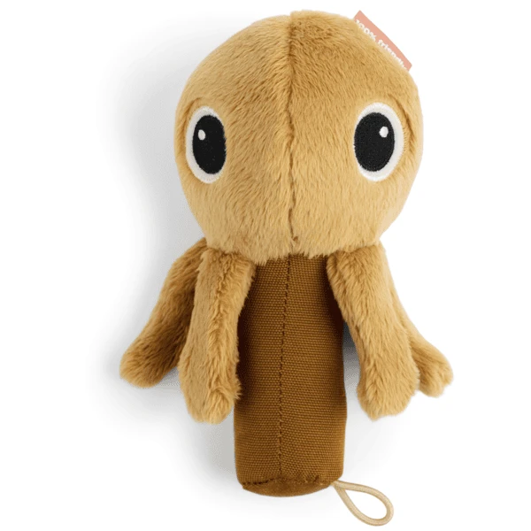Als de kleine kwal wordt geschud, maakt hij een zacht ratelend geluid. De zachte jelly rammelaar is verkrijgbaar in een zacht mosterdgeel.