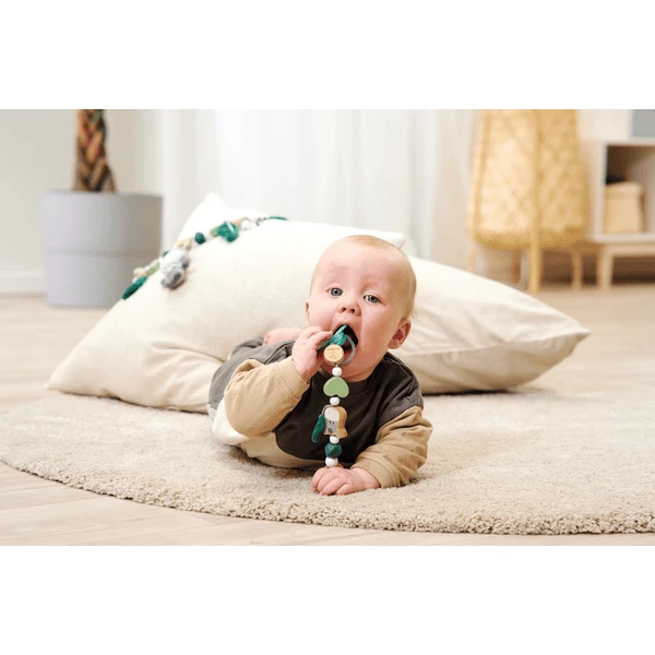 Eichhorn Baby HIPP fopspeenketting: De hoogwaardige Eichhorn Baby HIPP fopspeenketting van beukenhout heeft verschillende tactiele prikkels. De verschillende tastbare kralen en het pluche element zijn een zintuiglijke ervaring voor kleine handjes en een blikvanger voor de ogen. tiger Alleen FSC® 100% hout uit duurzame bosbouw wordt gebruikt voor de productie van de poppenkast. Geschikt voor baby’s vanaf de eerste levensmaanden.