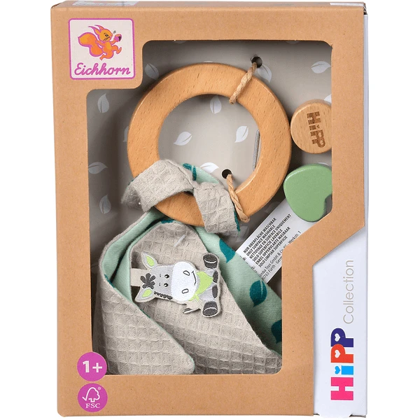 Eichhorn Baby HIPP grijpspeelgoed met knuffeldoekje: Het hoogwaardige Eichhorn Baby HIPP grijpspeelgoed van beukenhout is perfect voor kleine byehandjes, de vorm is aangenaam om vast te pakken. Het knuffeldoekje staat garant voor een zintuiglijke ervaring voor kleine handjes en een blikvanger. tiger Alleen FSC® 100% hout uit duurzame bosbouw wordt gebruikt bij de vervaardiging van het Eichhorn grijpspeelgoed.
