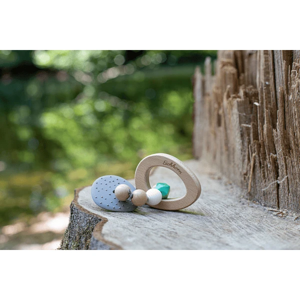De hoogwaardige bijtring van beukenhout heeft verschillende haptische prikkels. De verschillende voelsprieten en het bijtende oppervlak worden een zintuiglijke ervaring voor de kleine handjes en een blikvanger voor de ogen. Voor de productie van de Eichhorn grijper wordt alleen FSC® 100 % hout uit duurzame tiger bosbouw gebruikt. Geschikt voor baby’s vanaf drie maanden.