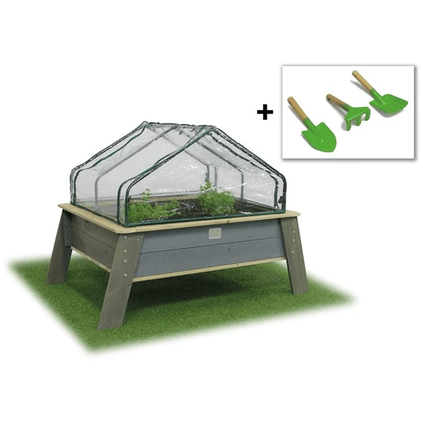 De EXIT Aksent kweektafel XL staat op poten, zodat je staand en met meerdere kinderen tegelijk kunt tuinieren. Hierdoor kunnen dieren ook minder snel bij de kweektafels en kun je na het spelen eenvoudig om de kweektafels heen vegen. De kweekkas zorgt ervoor dat je in weer en wind plantjes kunt kweken. Ook bij wind, lichte vorst en ongedierte worden de plantjes optimaal beschermd.