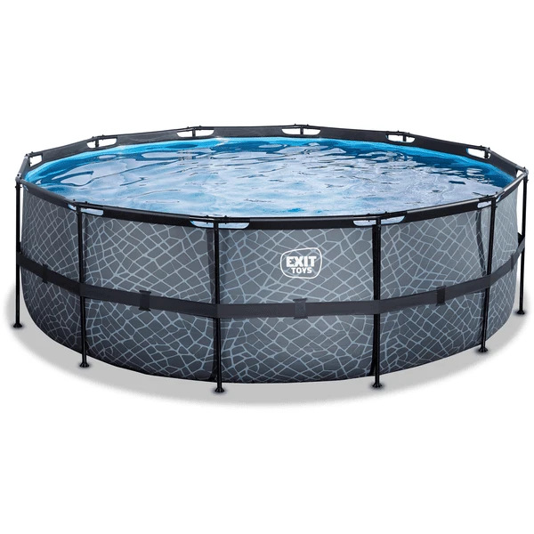Het zwembad Stone heeft een modern en sterk patroon op de zijwand, waardoor het een echte blikvanger in de tuin is. De binnenkant van het zwembad is blauw, voor dat frisse zwembadgevoel. Het EXIT zwembad heeft sterke 3-laagse wanden van PVC en polyester. De meegeleverde filterpomp houdt het water fris en in beweging, waardoor vervuiling van het water wordt voorkomen. De filterpomp kan eenvoudig op het zwembad worden gemonteerd en het water wordt ververst door middel van filterpatronen.