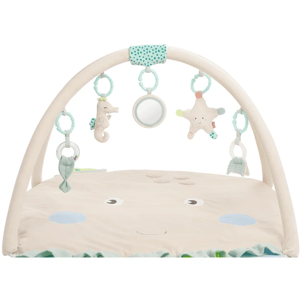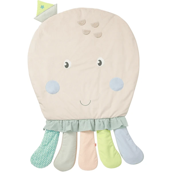 Er valt heel wat te ontdekken en aan te raken op de 3-D Activity octopusdeken uit de collectie Zeekinderen. Het grote speelkleed in de vorm van een octopus stimuleert de fantasie met verborgen speelfuncties en nodigt de baby uit om te voelen, te knuffelen en te spelen. De kleine zeediertjes op de speelboog stimuleren gericht grijpen en hand-oog coördinatie. Met rammelaar ring, dier stem, spiegel, rammelaar, zachte bijter en materiaal mix, de hangers ondersteunen baby’s speelplezier en aandacht te verhogen en spelenderwijs bevorderen van de tastzin en het gehoor, evenals de motoriek. Met de 3-D- Activity -blanket octopus kan het kroost spelenderwijs de rug- en nekspieren versterken in verschillende groeifasen tijdens het spelen, liggen, kruipen en zitten.