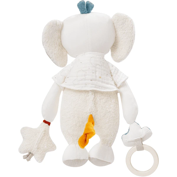 Schattig, speels & knuffelig – je moet gewoon van de Activity olifant uit de fehn NATUR® collectie houden! De knuffelolifant zorgt voor onvergetelijke eerste momenten in de kindertijd. Overdag het perfecte speelkameraadje, ’s nachts de verzorgende voogd waarop de baby’s heel zachtjes kunnen knuffelen. De materialen van 100% biologische katoen van gecontroleerde en gecertificeerde teelt en de vulling van 100% biologische PLA-vezels uit hernieuwbare bronnen maken spelen, knuffelen en zich goed voelen tot een bijzonder plezier. De houten ring, het verborgen gerammel en het ritselende papier maken zachte geluiden bij het bewegen, stimuleren de nieuwsgierigheid en stimuleren de zintuigen van de baby. De stoffen olifant is de perfecte eerste vriend en metgezel op de avonturen van de baby!