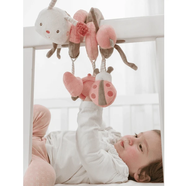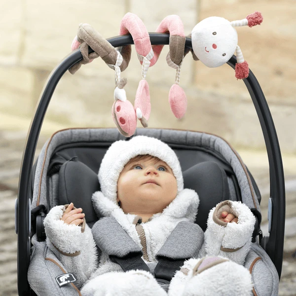 Je kunt hem bijvoorbeeld om de beugel van de Maxi Cosi of het kinderbedje wikkelen. De verborgen speelfuncties in de speelfiguren zorgen voor verassingen. Een mooie mix van functies en kindvriendelijke vormen.