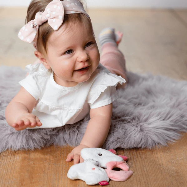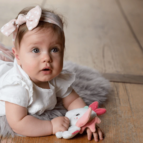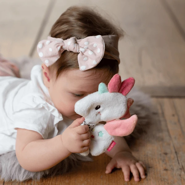 De kleine knisperende eenhoorn uit de Aiko & Yuki collectie stimuleert op speelse wijze het gehoor, de tastzin en de grip van de baby. Met de interessante structuren en stimulerende geluiden van het verborgen Raschel-papier wordt het nooit saai. Baby’s houden van de vorm van de knuffelige eenhoorn en zijn pluizige vacht om te grijpen, aan te raken, te ontdekken en te knuffelen! De schattige eenhoorn kan overal mee naartoe genomen worden en begeleidt de baby tijdens het spelen en dromen.