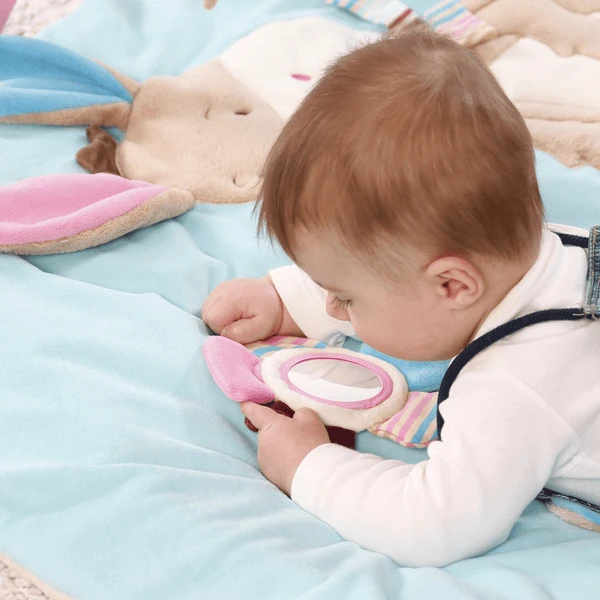 - Met knisperpapier, belletjes, pieper, spiegel, bijter, rammelaar
