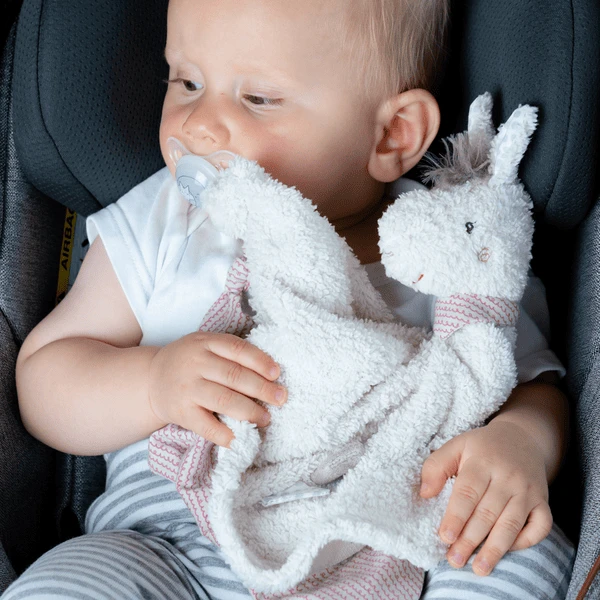 Speelkameraadje, slaaphulp & knuffeldoekje met bevestigingsring voor fopspeen om baby’s en peuters te grijpen, te voelen en lief te hebben.