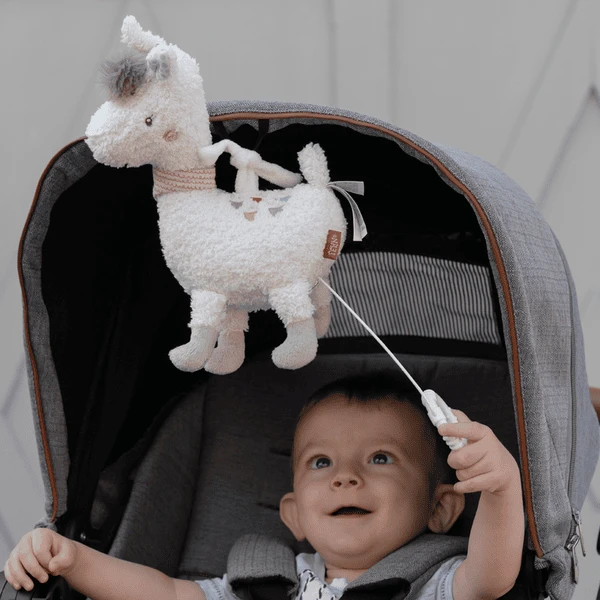 De schattige Lama uit de Peruaanse collectie is niet alleen een trouwe metgezel, maar troost en kalmeert met zijn zachte melodie! Door het praktische formaat en de bevestigingsriemen kun je de pluche lama overal mee naartoe nemen. Voelen, knuffelen en liefhebben: Het wordt al snel de beste vriend van baby!