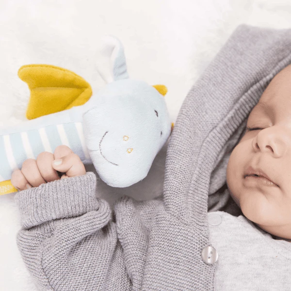 De vriendelijke draak piept vrolijk als die wordt ingedrukt. Het wekt nieuwschierigheid en bevordert de eerste grijppogingen. Aan de armen en oren kan je kindje perfect knuffelen.