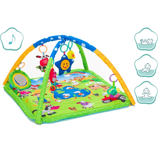 De zonnedoos maakt muziek en de spiegel toont altijd de mooiste van het hele land. De zacht gevoerde vloer is perfect om te liggen en te kruipen en de felle kleuren verrukken de jonge kinderogen.