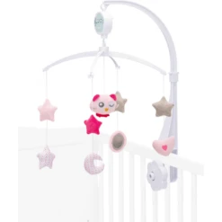Het is ontworpen om uw kleine schat te helpen ’s avonds een diepe en rustige slaap te vinden en overdag kan uw baby kijken naar de dansende vormen en heldere kleuren. Het ontspant ook met de zachte melodie van Mozart’s “Lullaby”. De langzame beweging van de motieven in een cirkel, die worden aangedreven door een klein mechanisch muziekdoosje, heeft ook een rustgevend effect. De muziekmobiel heeft een mooie Design met kinderlijke motieven en past in elke kinderkamer.