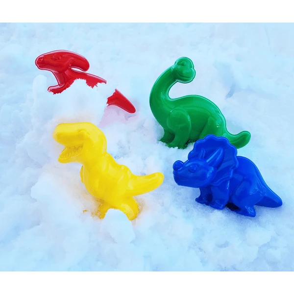 - De set bestaat uit vier verschillende dino’s in verschillende kleuren