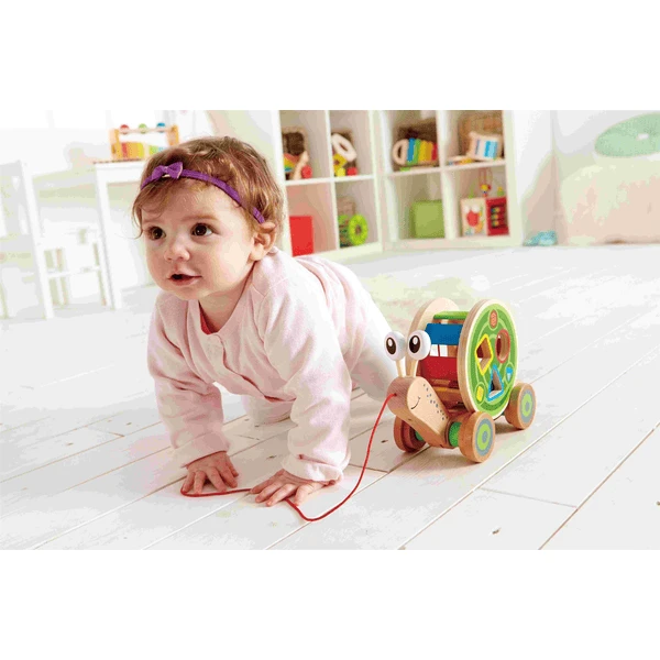Een echte alleskunner! De slak vervoert houten blokjes terwijl hij voortgetrokken wordt.
