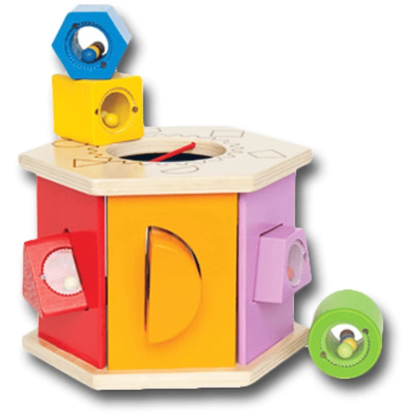 Vind jij voor elk vormpje de juiste opening? De met balletjes gevulde vormpjes bieden bij deze sorteerbox veelzijdige speelmogelijkheden.