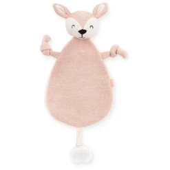 Het gebreide doekje heeft een lusje waarmee je hem ook aan de speen kan bevestigen. Zo raak de speen minder snel kwijt.