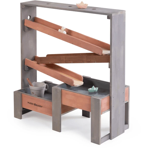 - De watertoren bestaat uit 3 afzonderlijke houten kanalen die eenvoudig in elkaar worden gehaakt.
