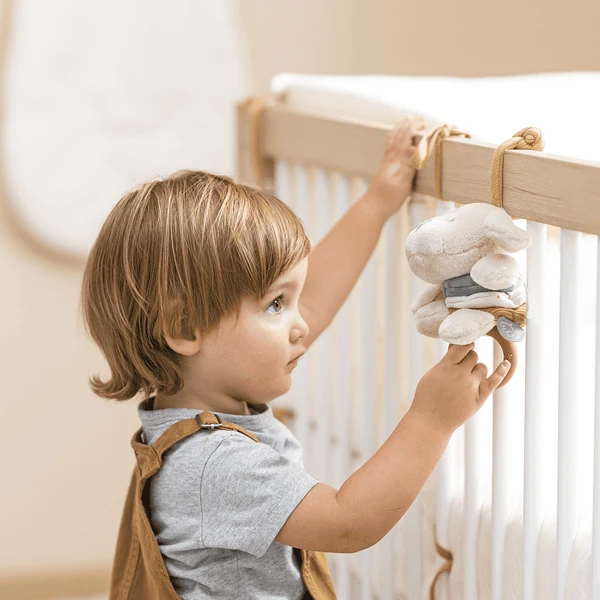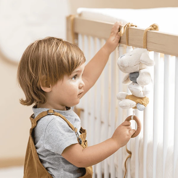 - Let op: Om elk risico op letsel door verstrikking te voorkomen, moet u het speelgoed verwijderen zodra het kind probeert op handen en voeten te gaan staan of te kruipen.