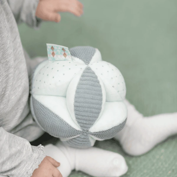 - Bal met verschillende zachtere materialen en geluiden om de baby te stimuleren