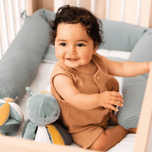 - Bal met verschillende zachtere materialen en geluiden om baby te stimuleren