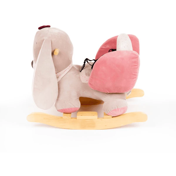 Knuffelig schommeldier uit de collectie „Nina, Jade & Lili“. Schattig schommeldier in mooie kleuren, gemaakt van zacht pluche en massief hout. Door de hoge en dik gevoerde zitting en de extra veiligheidsgordel, schommelen kinderen geheel veilig en comfortabel.