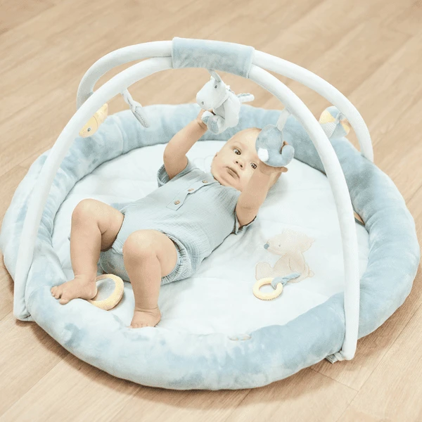 - Let op: Om elk risico op letsel door verstrengeling te voorkomen, verwijder het speelgoed zodra het kind probeert op handen en voeten te gaan staan of te kruipen.