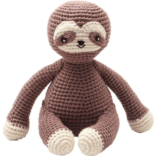 Deze prachtige handgemaakte knuffel heeft de vorm van een luiaard. Dankzij het zachte bamboegaren nodigt de bruine luiaard uit om te knuffelen en laat hij de ogen van de baby glimmen. Verder maakt de knuffel een heerlijk piepje als je op zijn buik drukt. Het artikel kan met de hand worden gewassen op 30 °C en mag niet in de droger worden gedroogd.