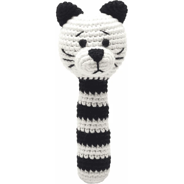 Deze prachtige rammelaar in het ontwerp van een kat overtuigt door zijn hoogwaardige kwaliteit. Het zachte bamboegaren nodigt uit tot knuffelen en laat de ogen van de baby glanzen. Deze rammelaar is een perfect cadeau voor een baby.