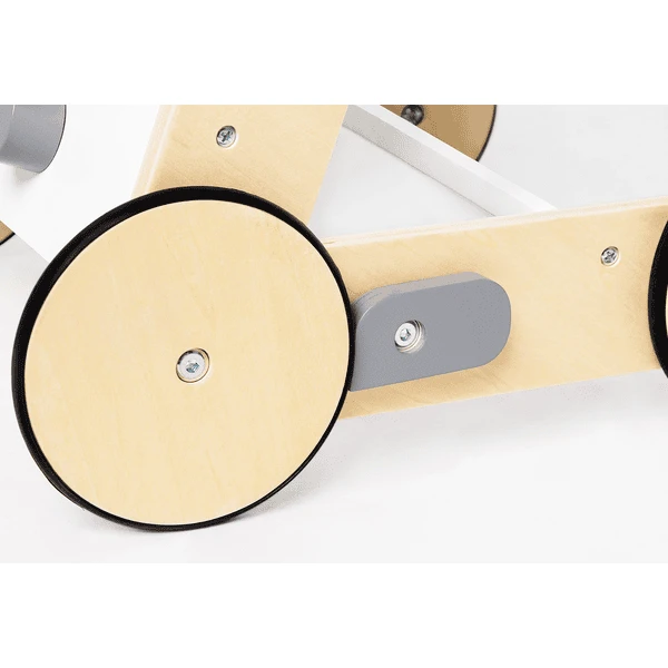 Dit garandeert een hoge mate van veiligheid tijdens de eerste looppogingen. De met rubber beklede houten wielen zorgen voor een bijzonder stille, vloervriendelijke verplaatsing.