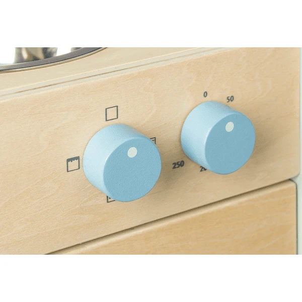 Door de werkbladhoogte van 40 cm kunnen kleine sterrenkoks comfortabel spelen in de speelkeuken. Achter het deurtje is voldoende opbergruimte voor ingrediรซnten en keukenaccessoires.