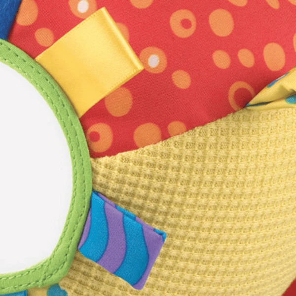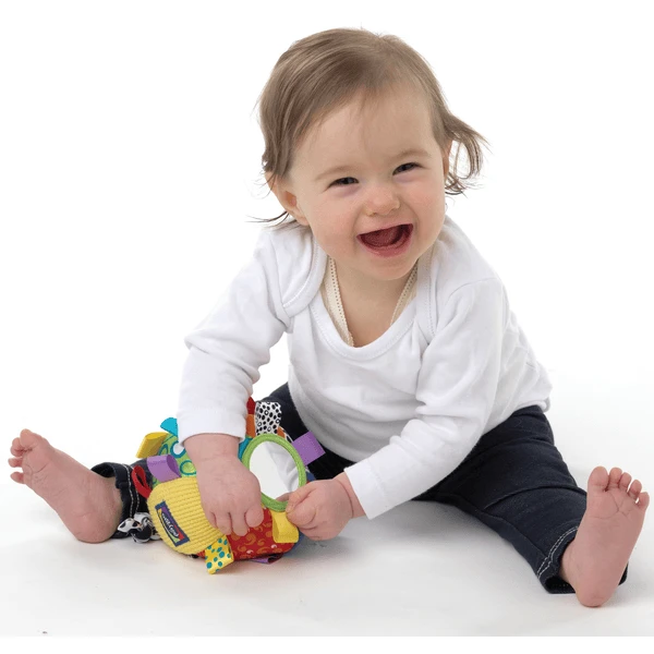 De kleine bal is van verschillende etiketten voorzien – bij het aanraken, vasthouden en knuffelen, wordt de motoriek bijzonder gestimuleerd. Verschillende oppervlaktes nodigen uit te voelen en te ontdekken. Bij het rollen en gooien, klinken de belletjes vanuit het midden van de bal. Met spiegel, om zichzelf te ontdekken. Kan met 2 bandjes bevestigd worden. Aanbevolen leeftijd: vanaf 0 maanden