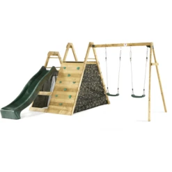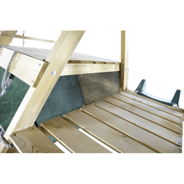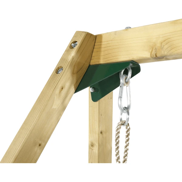 Inclusief twee schommels met in hoogte verstelbare stoelen. Geschikt voor kleine krijgers van drie tot twaalf jaar.