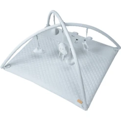 De deken met speelboog en 5 speelelementen in turquoise kan gebruikt