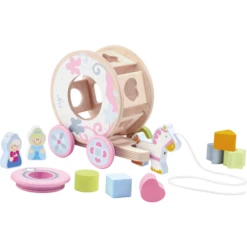 - Met leuke houten figuurtjes: een paard, een prinses en een fee