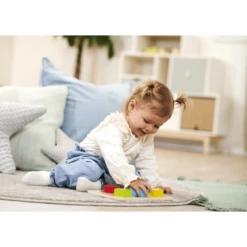 De grijpende lichaamsknuppel zet Baby zijn kleine wereld goed op het hoofd. Zeer schattig en zacht is de hanger voor de Baby kom en belooft veel plezier bij de eerste greep, gevoel en ontdekking. Met een rammelaarshandrim en een knisperende bloem is dit een geweldig Baby cadeau dat voor de kleintjes niet zo snel saai wordt.