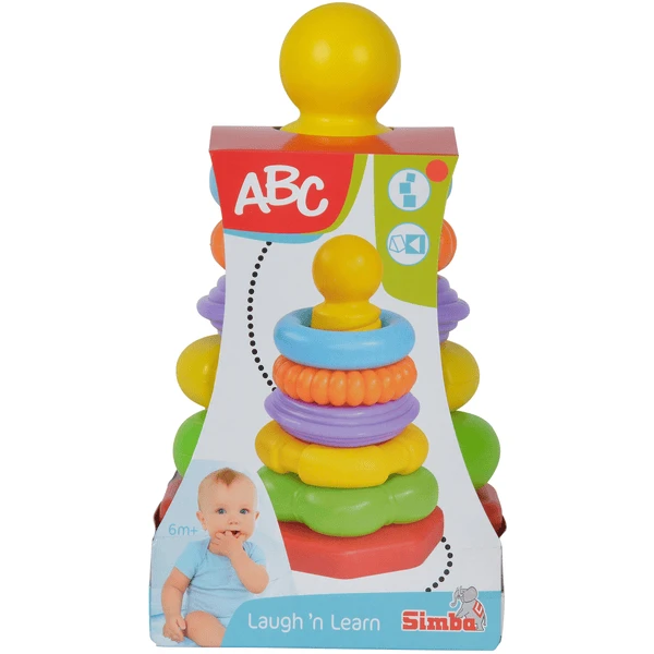 Leer en speelplezier met de ABC Ring pyramide ! De ring pyramide bestaat uit 5 kleurrijke, verschillend gevormde ringen en een gewelfde plugbasis die op een grappige manier schommelt. De vijf ringen in de juiste tiger volgorde zetten is echt leuk en bevordert de coördinatie van oog en hand op een speelse manier. De ring pyramide is 25 cm hoog en geschikt voor kinderen vanaf 6 maanden.