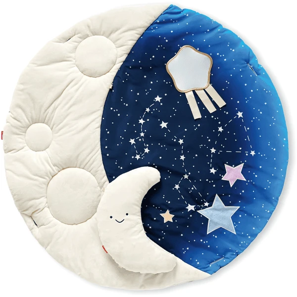 Kleine dromertjes ontdekken zichzelf in de afneembare sterrenspiegel en het halve maanvormige kussen biedt optimale ondersteuning in elke positie.