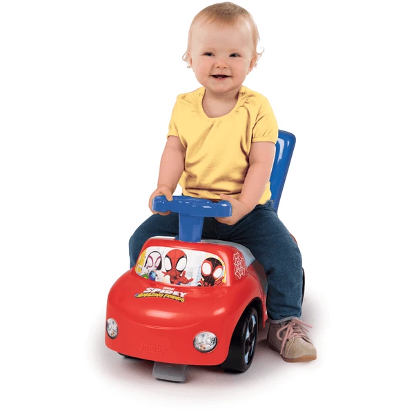 - De autoglijbaan van Smoby in de trendy Design van “Spidey en zijn supervrienden” is het ideale kindervoertuig voor de eerste avontuurlijke tochten van kleine ontdekkingsreizigers vanaf de leeftijd van 10 maanden.