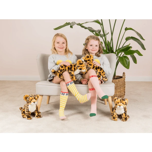 De elegante wilde kat is gemaakt van hoogwaardig pluche en gevuld met zachte polyesterwol.